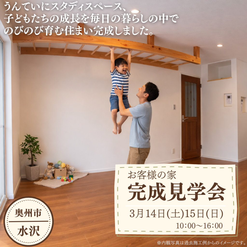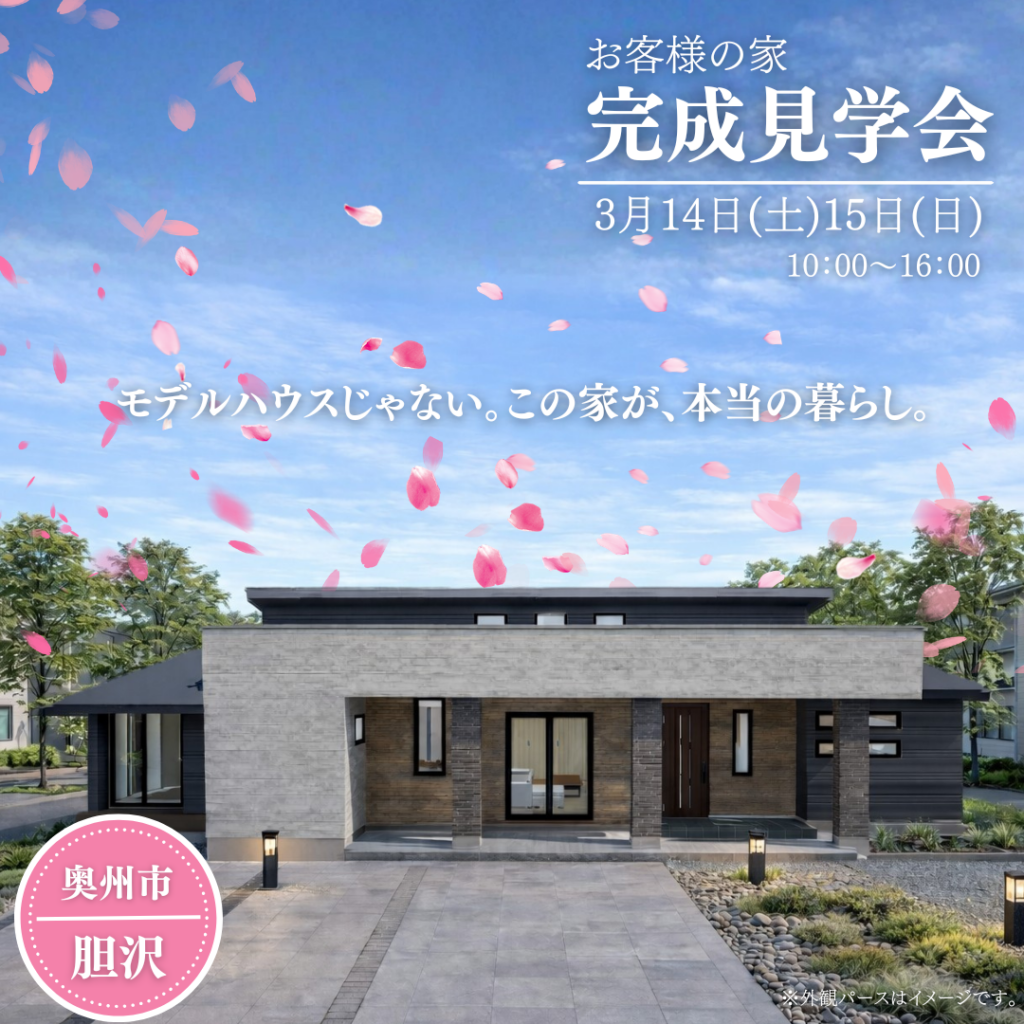 奥州市水沢にて、お客様の家完成見学会を開催いたします。