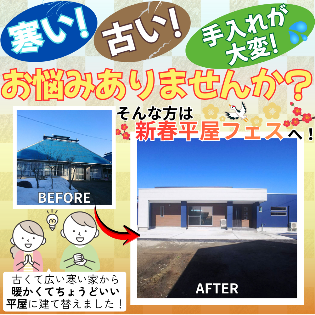 「家賃がもったいない」「掃除がラクな家がいい」「老後の暮らしを見据えたい」そんな想いをカタチにした、平屋専門店ならではの新提案をぜひ現地でご体感ください。