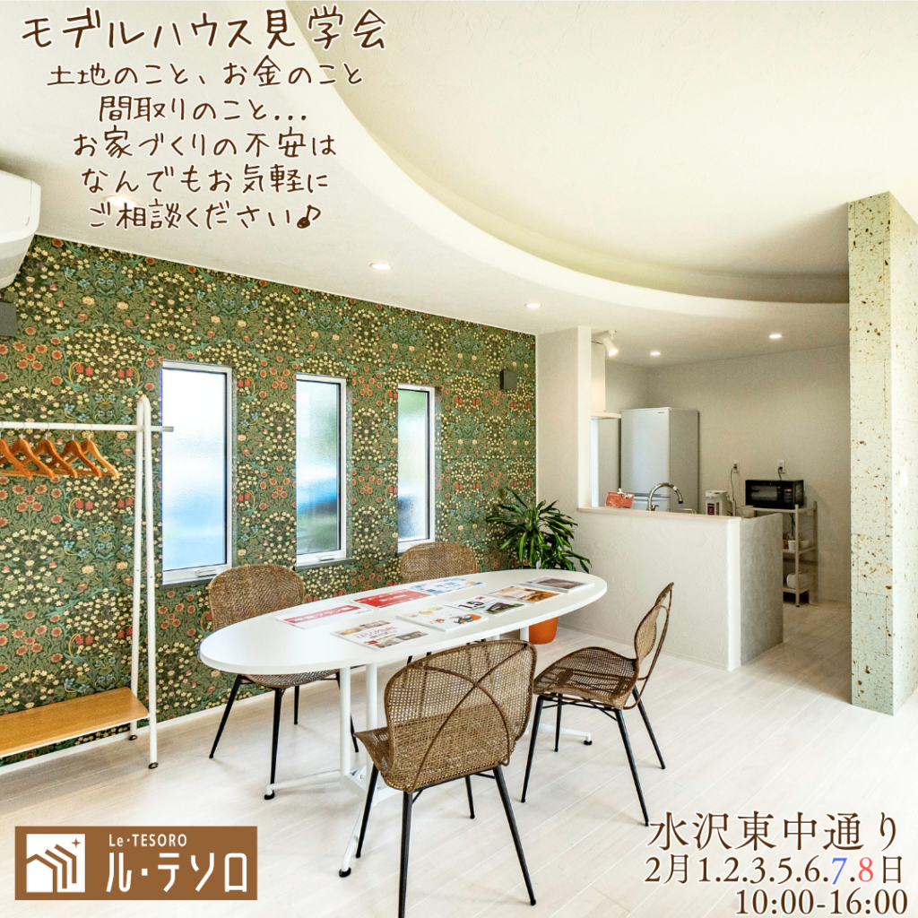奥州市水沢東中通りにある「ル・テソロモデルハウス」は、岩手県初の平屋専門店・レスモアがご提案する“ちょうどいい平屋”を体感できる相談会会場です。
