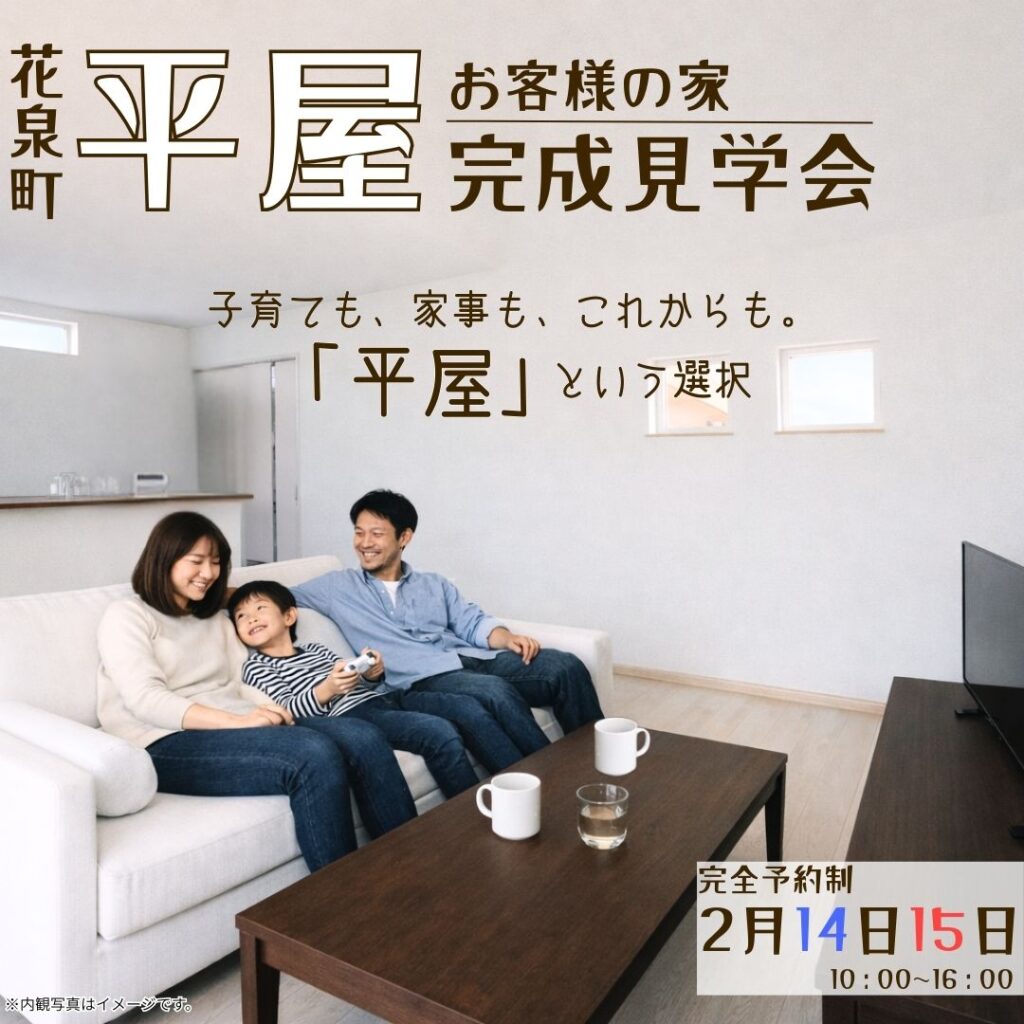 岩手県一関市花泉町にて、平屋のお客様の家「完成見学会」を開催いたします!