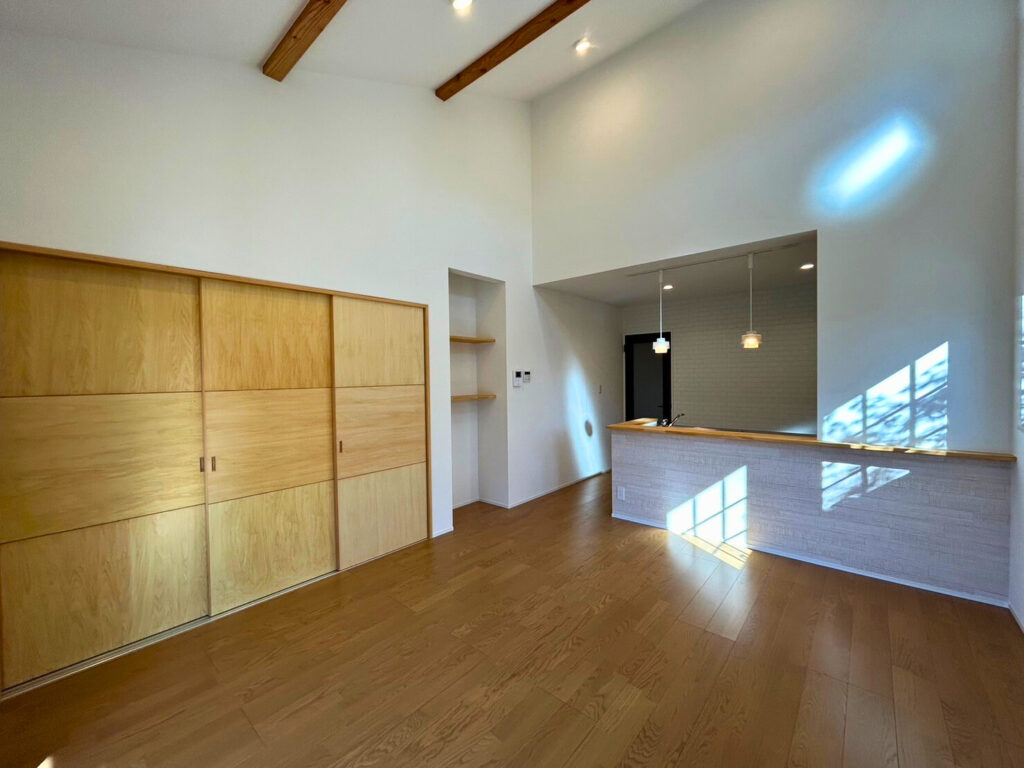 勾配天井が心地よい、開放感あふれるリビング