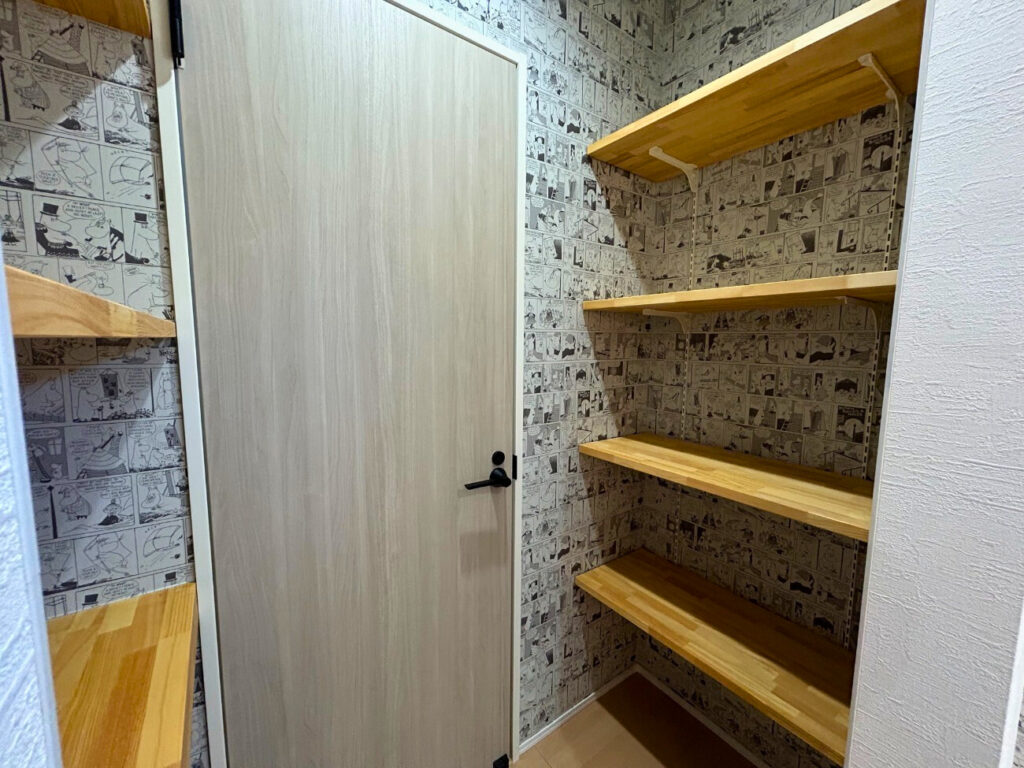 キッチンには使い勝手のよいパントリーを備えており、可動棚で食品や日用品をすっきり整理できます。