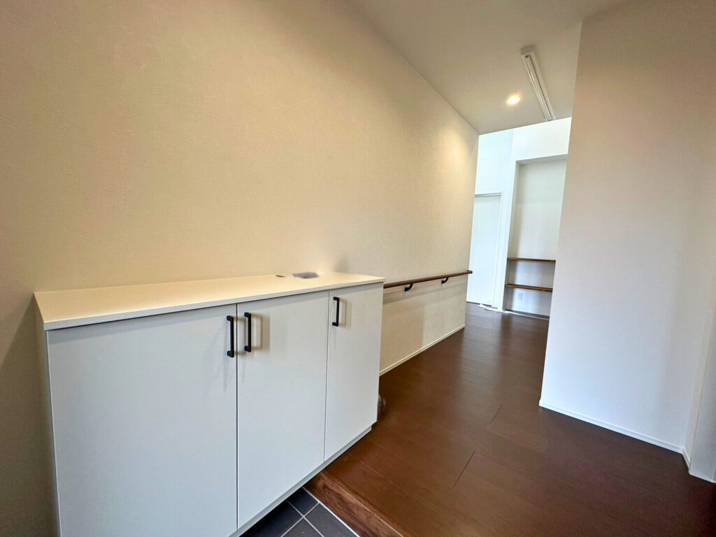 玄関ホールには物干しスペースを設け、毎日の暮らしに実用性をプラス。
