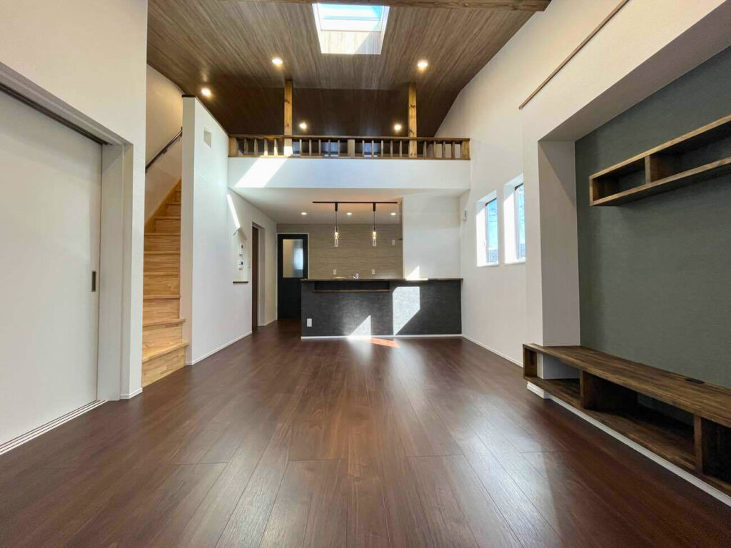 トップライトから光が降り注ぐ、開放感あふれるLDK