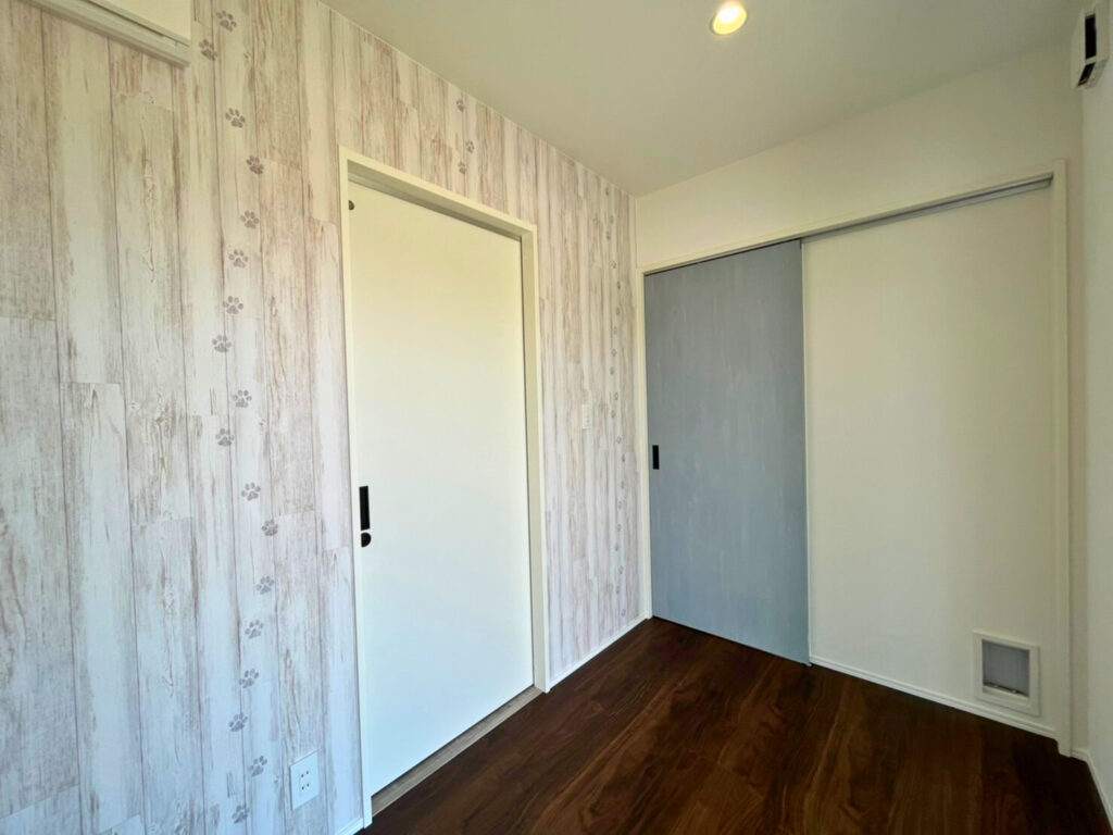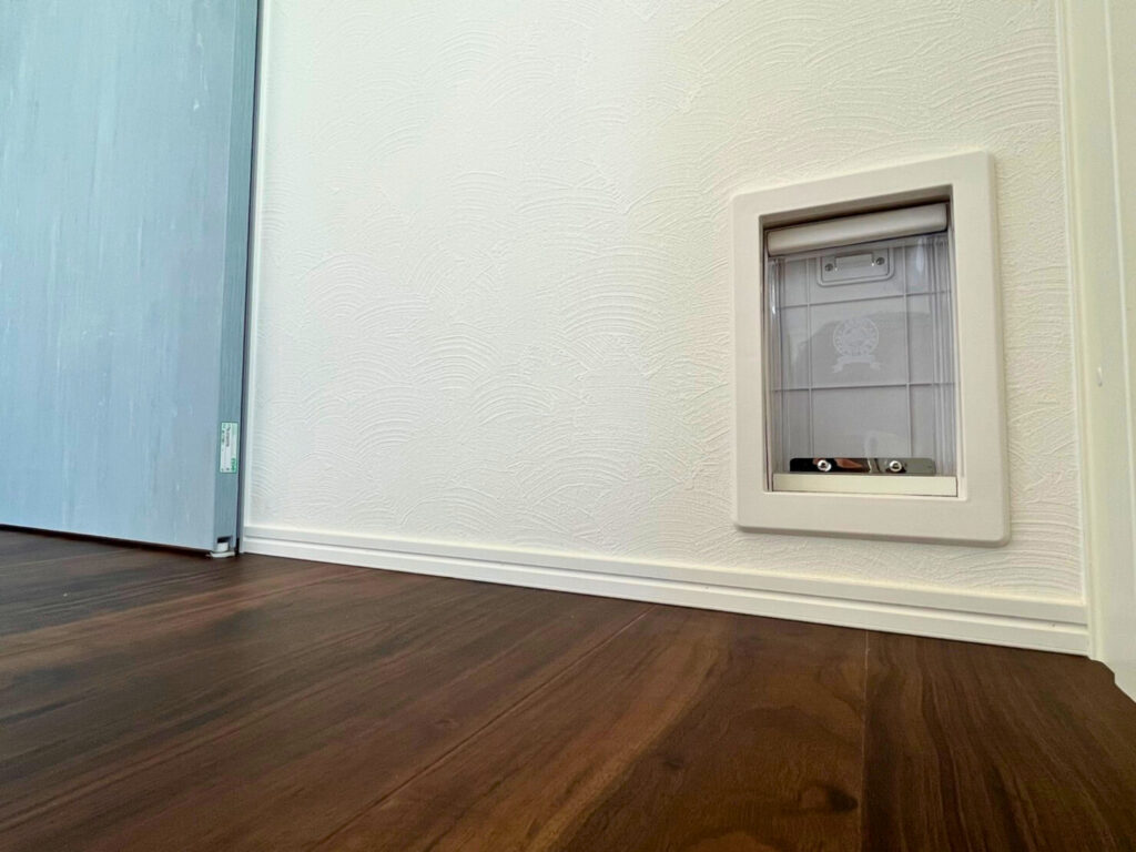 ペット用の扉を設けることで、家族と同じ空間にいながらもペットが自由に行き来できるように。