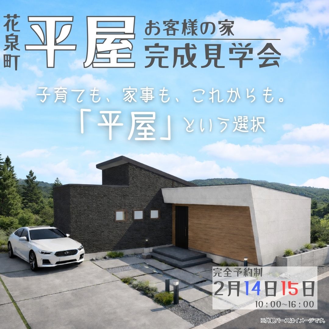 岩手県一関市花泉町にて、平屋のお客様の家「完成見学会」を開催いたします!