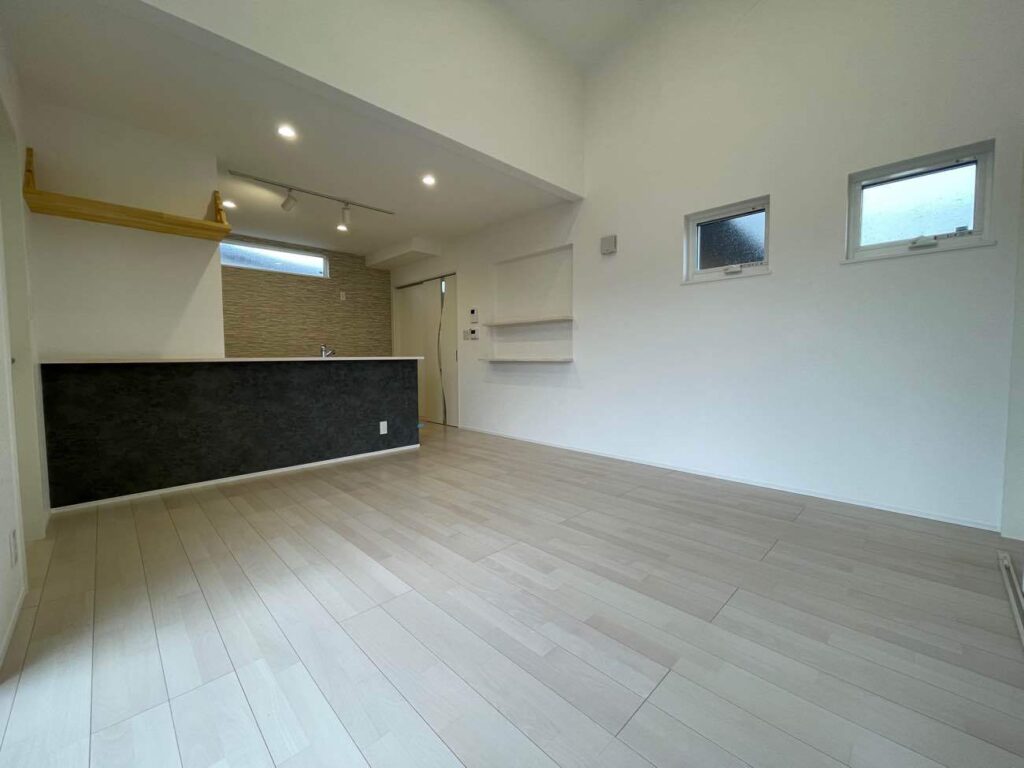 高い天井が空間に広がりをもたらし、のびやかに過ごせるLDK。