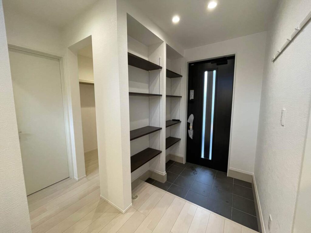 お気に入りの靴をディスプレイとして楽しめるほか、ファミリークローゼットへつながる動線も確保しています。