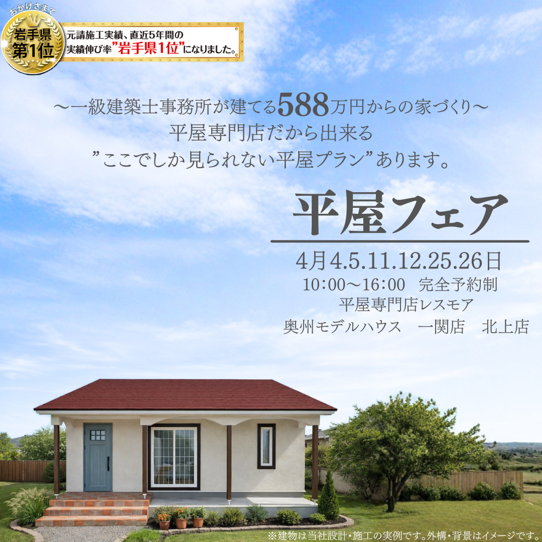 【4月開催】平屋専門店の平屋フェア|北上・奥州・一関で相談&見学会