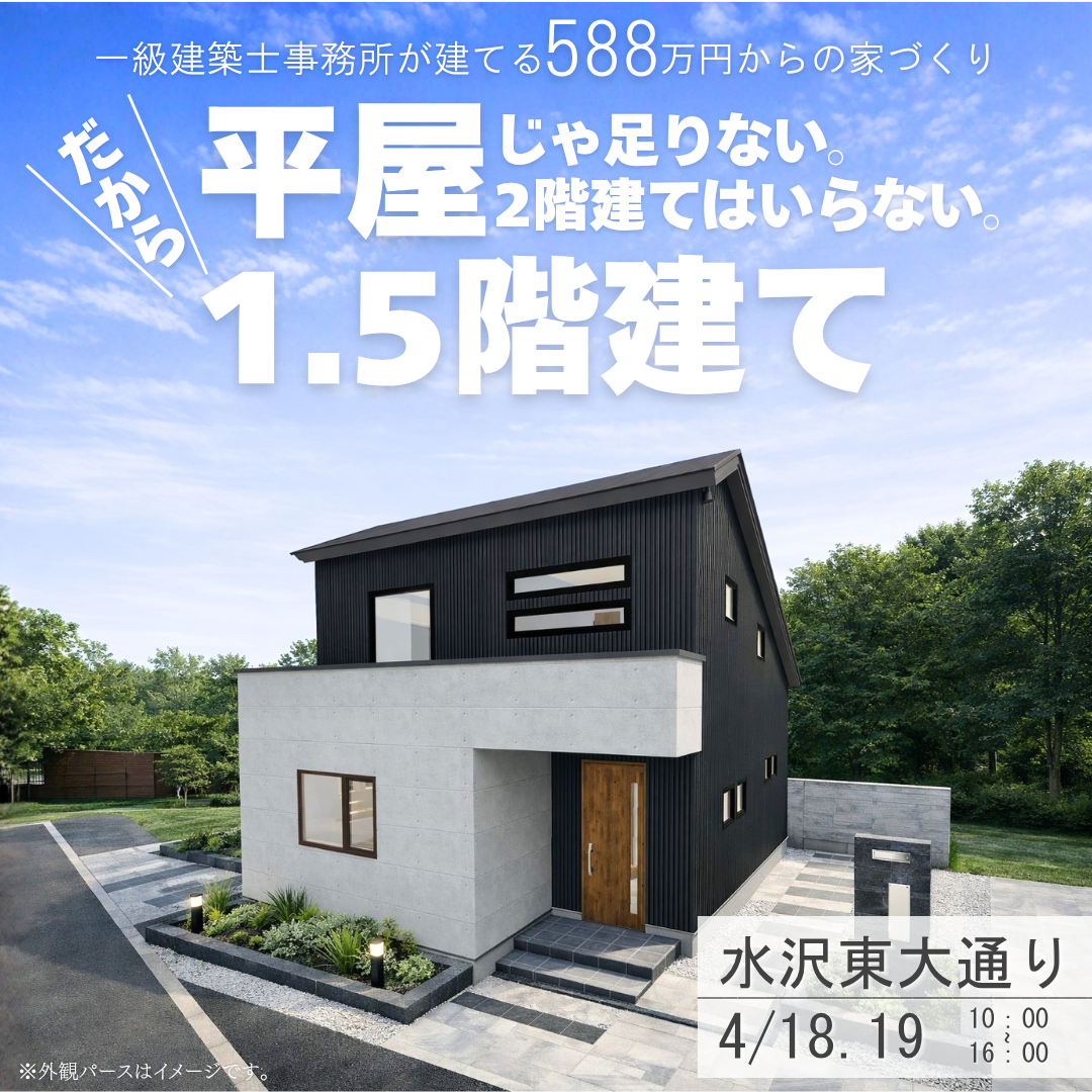 👉 「平屋+α」の1.5階建てを体感できる見学会です。