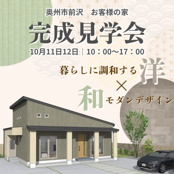 完全予約制【完成見学会 in 奥州市水沢|8/30(土)・31(日)】1〜2人で心地よく暮らせる、等身大サイズの平屋が完成しました!